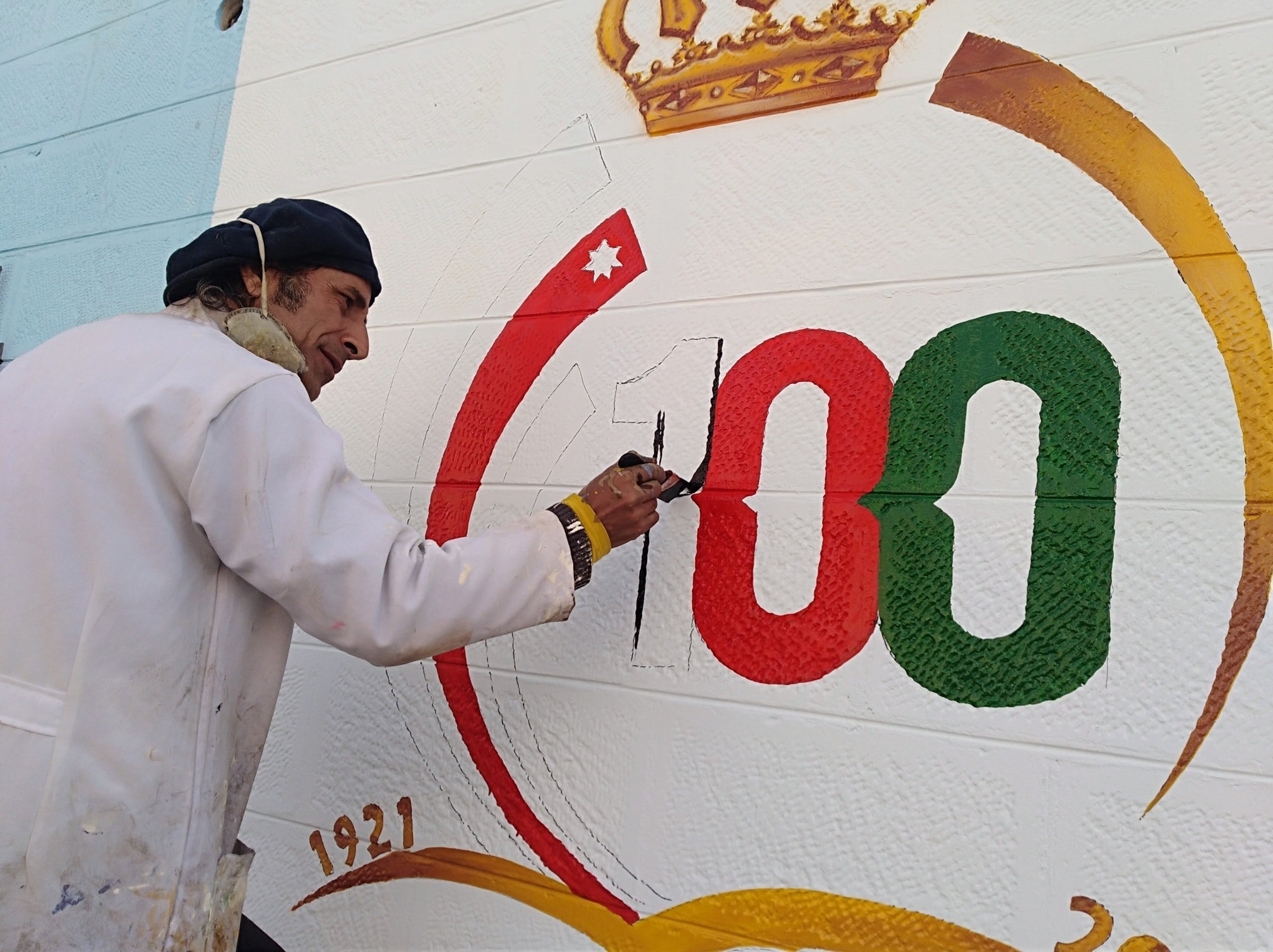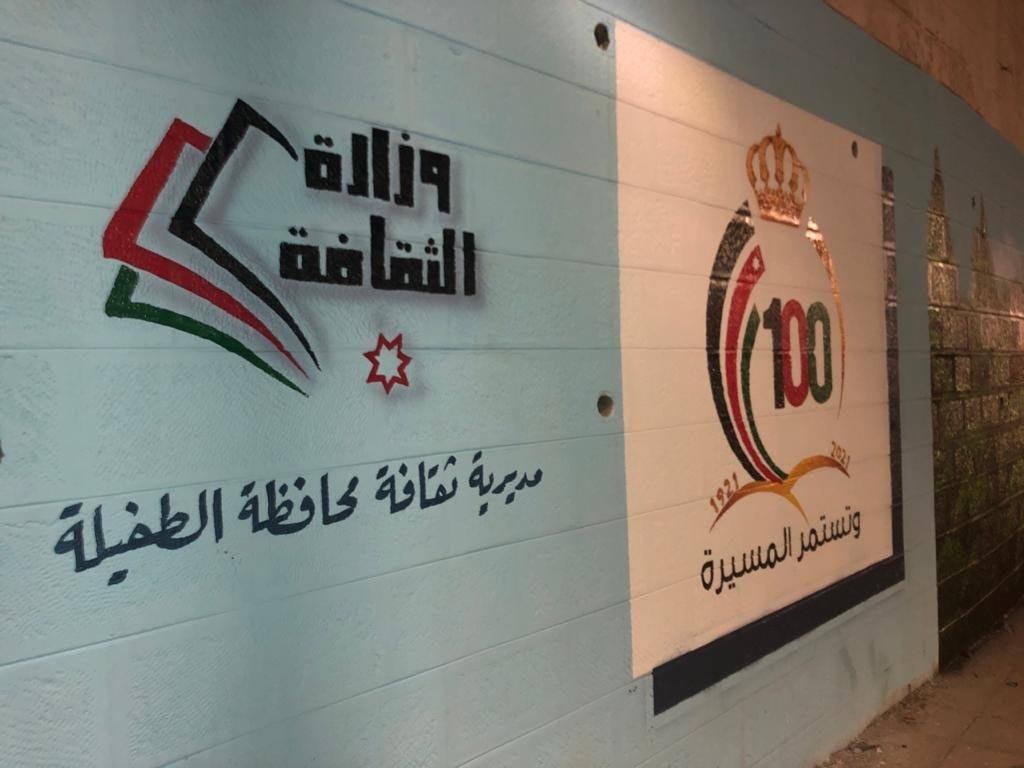 وقال مدير ثقافة الطفيلة الدكتور سالم الفقير، في تصريح صحفي، ان الجدارية التي تم رسمها على جدران دار المحافظة جاءت بمناسبة احتفالات المملكة بمئوية الدولة الأردنية، وبدعم من وزارة الثقافة ، حيث قام الفنانون التشكيليون أمين الدومي، وأسامة النجار، واكثم الدومي، برسم هذه الجدارية بطول تجاوز 120 مترا وارتفاع نحو خمسة أمتار.