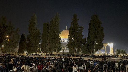 أدى 100 ألف مصل صلاتي العشاء والتراويح في اليوم الخامس والعشرين من شهر رمضان الفضيل في المسجد الأقصى المبارك، في ظل الإجراءات العسكرية المشددة التي تفرضها سلطات الاحتلال الإسرائيلي على الوصول إلى المسجد.