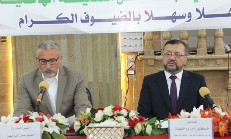 حيث أدار الجلسة الشيخ معن الهزايمة، رئيس قسم التفتيش في مديرية الأوقاف، وقدّم المحاضرة الأستاذ الدكتور آدم نوح القضاة، أستاذ في كلية الشريعة بجامعة اليرموك.