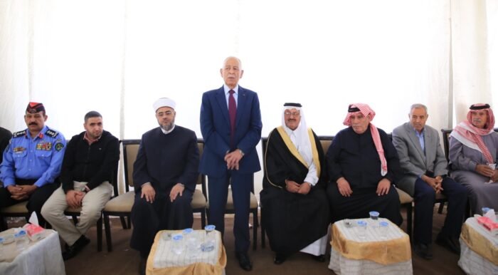 وفي منطقة حي الحسين بمحافظة الزرقاء، نقل العيسوي، خلال زيارته بيت عزاء المرحومة حمدة حسين العمري، والدة العميد المتقاعد فراس العمري، تعازي ومواساة جلالة الملك وسمو ولي العهد، سائلا المولى عز وجل أن يتغمدها بواسع رحمته.