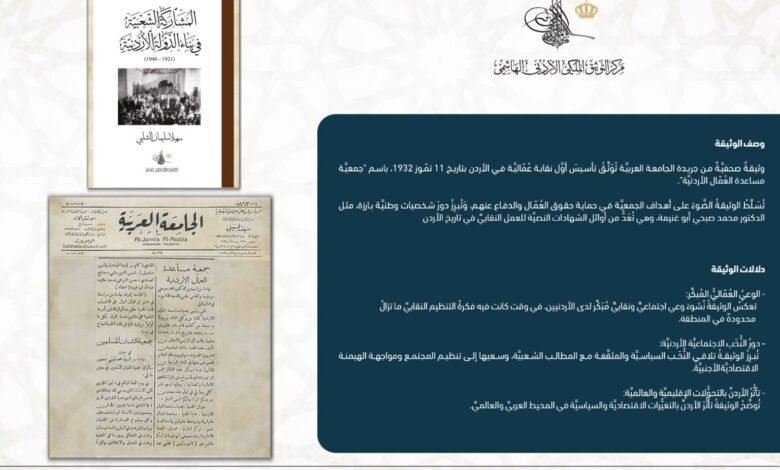 التوثيق الملكي يعرض وثيقة حول نشأة أول نقابة عمالية في الأردن