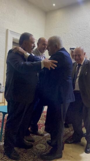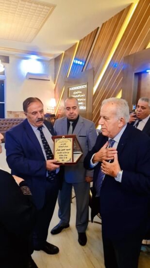 في أجواء تعدت الوصف بالكرم وحسن الضيافة، وبأجواء دافئة أشعلت سماء الفرح، وقذفت البهجة والسعادة في قلوب الحاضرين ، فقد كرم السيد مروان صوان المقابلة رئيس الجالية الاردنية في استراليا رجل الأعمال ابن جديتا اربد جميل عياش “ابو عبده” تقديراً لجهوده في متابعة شؤون الاردنيين منذ عام ١٩٧٣ وحتى اليوم، بحضور العديد من الوزراء والنواب وكبار الضباط المتقاعدين ورؤوساء البلديات، الذين تناولوا طعام العشاء على شرف ضيف الاردن الذي حمل الاردن والاردنيين في قلبه رغم بعد المسافات.
