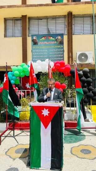 حيث بدأ الاحتفال بالسلام الملكي وتلاوة آيات من القرآن الكريم وكلمة ترحيبية لمديرة المدرسة هناء عبيدات قدمت من خلالها الشكر والتقدير لراعي الاحتفال والى مؤسسة المتقاعدين العسكريين والحضور .
