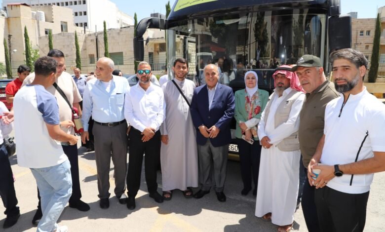 بحضور امين عام الوزارة للشؤون الإدارية والمالية سحر الشخاترة. ودع وزير التربية والتعليم الدكتور عزمي محافظة اليوم الأحد، في ساحة الوزارة بعثة الحج المتجهة إلى الديار المقدسة لأداء مناسك الحج من المعلمين والعاملين في الوزارة.