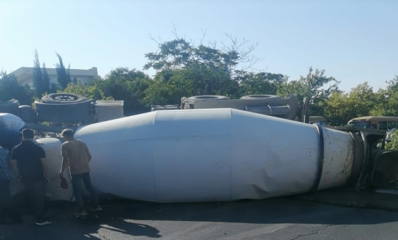 إصابتان وتحويل للسير في شارع الشعب بدابوق بسبب انقلاب صهريج إسمنت