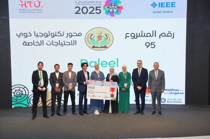 وقد جاء فوز الفريق الطلابي عن مشروعهم النوعي “Daleel”، الذي تم تطويره بإشراف الأستاذ الدكتور أيمن الضمور، ويهدف إلى تسهيل حياة ذوي الإعاقة البصرية والحركية من خلال تطبيق ذكي يقدم خدمات إرشادية وملاحية مدعومة بتقنيات الذكاء الاصطناعي وإنترنت الأشياء. وقد لاقى المشروع إشادة واسعة من لجان التحكيم لما يحتويه من حلول تقنية مبتكرة ومراعاة دقيقة لاحتياجات الفئة المستهدفة.