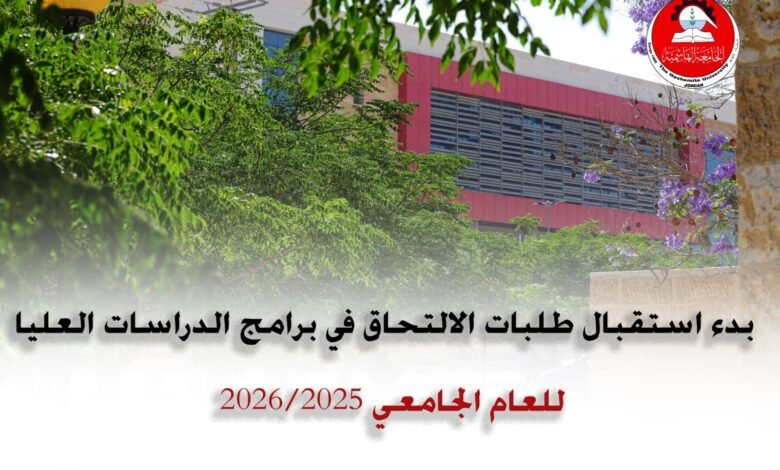 أعلنت كلية الدراسات العليا في الجامعة الهاشمية عن بدء استقبال طلبات الالتحاق في برامج الدكتوراه، والماجستير، والدبلوم العالي، ضمن البرنامجين العادي والدولي، وذلك للفصل الدراسي الأول من العام الجامعي 2025/2026، اعتبارًا من يوم الخميس 31 تموز 2025.