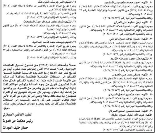 أمهلت محكمة أمن الدَّولة اليوم الأثنين متهمين، 10 أيَّام لتسليم أنفسهم للسلطات المختصة لمحاكمتهم على التهم المسندة إليهم، وإلا سيتم اعتبارهم فارين من وجه العدالة.