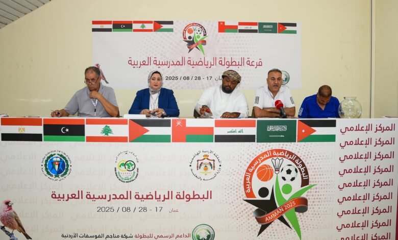 برعاية سمو الأمير فيصل بن الحسين رئيس اللجنة الأولمبية، تفتتح في صالة الأمير حمزة بمدينة الحسين للشباب، عند الساعة الخامسة مساء غدا الثلاثاء، فعاليات البطولة العربية للرياضة المدرسية، والتي تستمر حتى (28 آب الحالي)، في العاب (خماسي كرة القدم، كرة السلة، والريشة الطائرة وسلة 3×3)، بمشاركة دول: فلسطين، السعودية، سلطنة عمان، مصر، ليبيا، لبنان، بالاضافة الى الاردن (المستضيف).