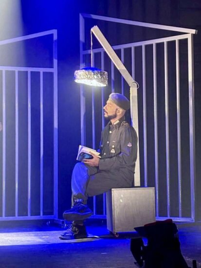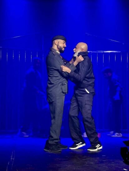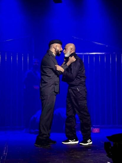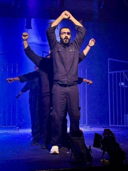 على خشبة تتوزع فوقها القضبان الحديدية، يبدأ العرض بصورة قاسية، سجين عجوز، هو “الحوت”، يقع تحت ضربات سجان لا يرحم، فيما يحرك السجناء القضبان ليعيدوا تشكيلها كسجن متحول يكاد يبتلع جسده، تلك الافتتاحية لم تكن مجرد مشهد جسدي، بل بيان بصري يكشف أن السجن ليس مكانا ثابتا، بل حالة متغيرة تلاحق الجسد والروح.