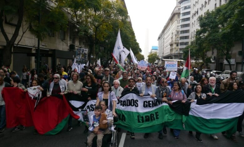 وطالب المحتشدون بوقف المجازر ومحاسبة إسرائيل على جرائمها ومحاكمة قادتها أمام المحاكم الدولية، مؤكدين في الوقت نفسه رفضهم القاطع للزيارة المحتملة لرئيس حكومة الاحتلال إلى الأرجنتين، مشددين على ضرورة اعتقاله فور دخوله الأراضي الأرجنتينية تنفيذاً لمذكرات التوقيف الدولية الصادرة بحقه.