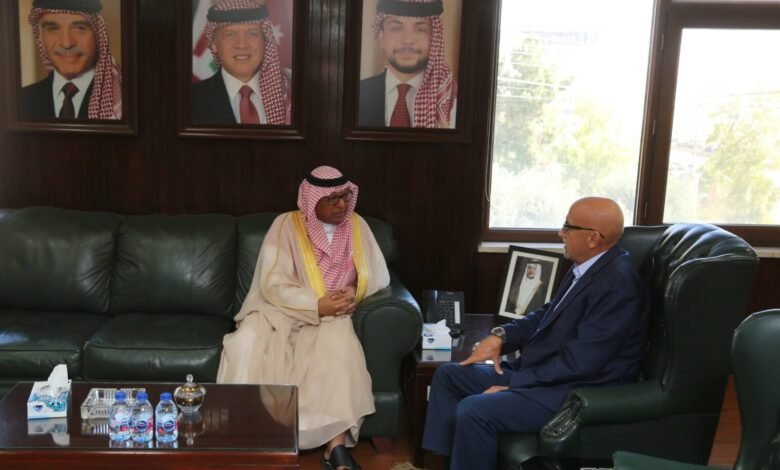 استقبل وزير المياه والري المهندس رائد أبو السعود اليوم الخميس 11 أيلول 2025 في مكتبه بوزارة المياه والري القائم بالأعمال في سفارة المملكة العربية السعودية لدى الأردن السيد محمد بن حسن مونس، حيث جرى بحث أوجه التعاون المشترك وتعزيزها في مواجهة التحديات المائبة وسبل تطويرها.