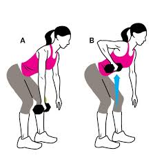 يُؤدّى هذا التمرين وقوفًا مع ثني الركبتين قليلًا وحمل دمبل (وزن خفيف) في كل يد، مع انحناء الجذع للأمام قليلاً. يتم رفع الأوزان إلى الجانبين حتى يلتقي لوحا الكتفان معًا، ثم خفضها مرة أخرى. يقوي هذا التمرين عضلات الكتف والجزء العلوي من الظهر.