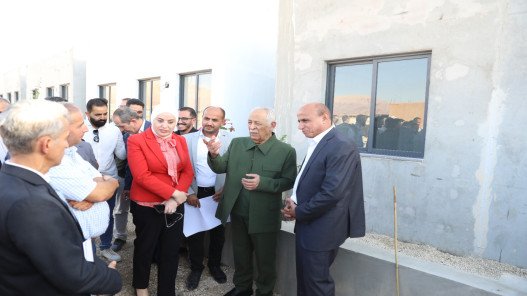 وجال العيسوي، بحضور الوزيرة بني مصطفى، والمحافظ الشريف والمهندس المعايطة في المشروع، الذي ينفذ على نظام الأبنية الجاهزة باستخدام الخرسانة مسبقة الصب، حيث استمع إلى إيجاز فني حول مجريات العمل ومراحل الإنجاز.