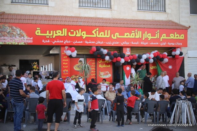 داود شاهين والعائلة يتقدمون من الأخ و الصديق العزيز أسامة اللحام ” أبو علاء ” باحر التهاني والتبريكات بمناسبة إفتتاح المقر الجديد لمطعم أنوار الاقصى للمأكولات العربية في جبل الحسين – بجانب مركز امن مخيم الحسين. متمنين له التوفيق والنجاح.