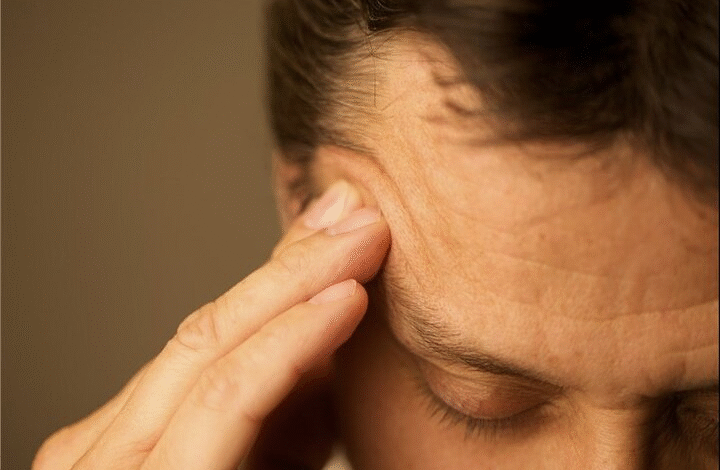 مشكلات المفصل الصدغي الفكي: توتر عضلات المضغ أو التهاب المفصل قد يسبب انتقال الألم إلى الصدغين ومؤخرة الرأس.