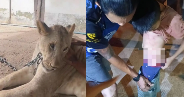لبؤة تهاجم طفلا في تايلاند .. ورجل ينقذه من الموت