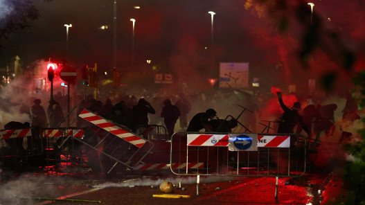وفي نهاية المسيرة، ألقى بعض المتظاهرين مفرقعات نارية وحواجز للسيطرة على الحشود على قوات الأمن التي ردت بمدافع المياه والغاز المسيل للدموع.