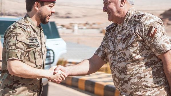 وكان في استقبال سموه لدى وصوله موقع التمرين، رئيس هيئة الأركان المشتركة اللواء الركن يوسف أحمد الحنيطي، وقائد اللواء، وعدد من كبار ضباط القوات المسلحة الأردنية – الجيش العربي.و