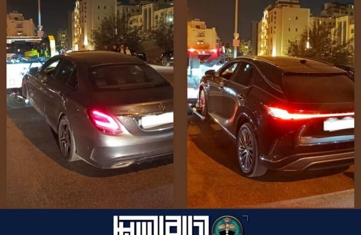 وقالت إدارة السير إنه وبعد جمع المعلومات وتحديد المركبتين اللتين ظهرتا في الفيديو، تم ضبطهما واتخاذ الإجراءات القانونية كافة بحق السائقين، إضافة إلى حجز المركبتين داخل ساحات الحجز المخصصة لذلك.