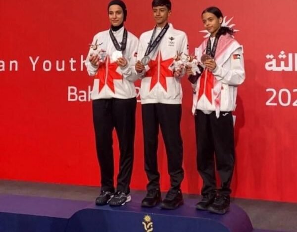حصد المنتخب الوطني للناشئين والناشئات للتايكواندو، ثلاث ميداليات ملونة في اليوم الأول من منافسات دورة الألعاب الآسيوية الثالثة للشباب والمقامة في البحرين.