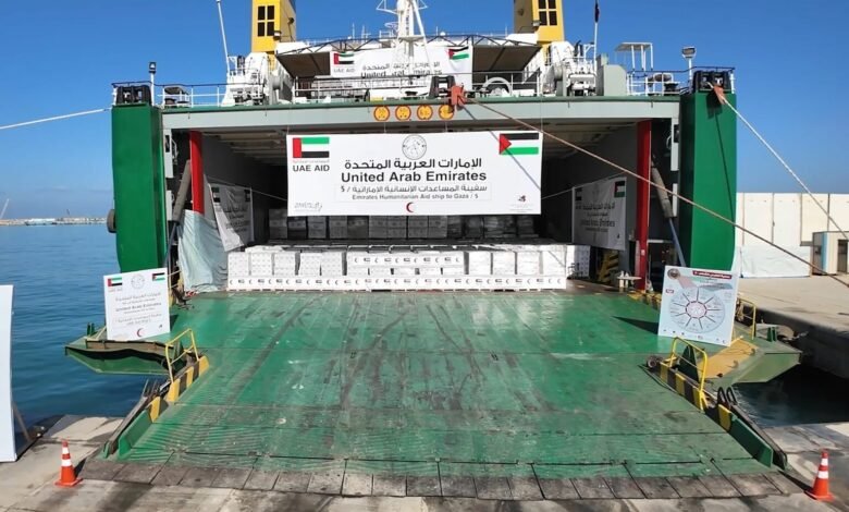 وكانت سفينة الإغاثة الإماراتية، أبحرت من موانئ الإمارات قبل أسبوع في إطار المساعدات الإماراتية لسكان غزة.