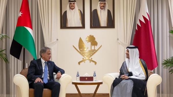 التقى رئيس الوزراء الدكتور جعفر حسَّان في العاصمة القطريَّة الدَّوحة اليوم الاثنين، رئيس مجلس الوزراء ووزير الخارجيَّة القطري الشَّيخ محمد بن عبد الرحمن آل ثاني.وجرى خلال اللِّقاء بحث سُبُل تعزيز العلاقات الأخويَّة التَّاريخيَّة بين البلدين في مختلف المجالات، حيث استعرض رئيس الوزراء ما يقوم به الأردن من مشاريع استراتيجيَّة في قطاعات الطاقَّة والنقل والمياه والسِّياحة والبنى التحتيَّة، وإمكانيَّة التعاون بين البلدين في هذه المجالات.