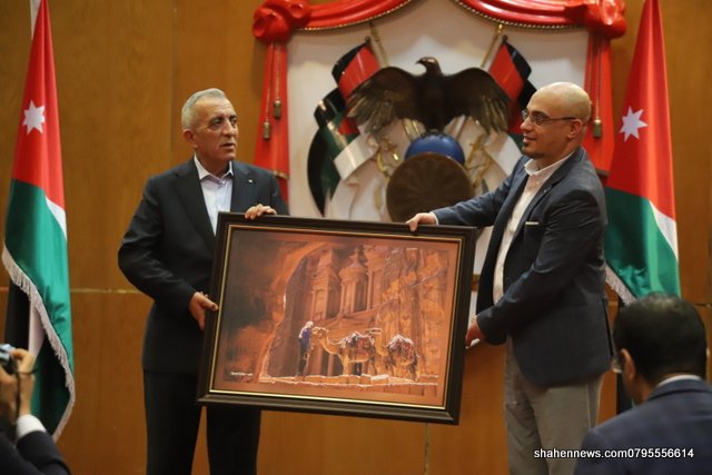 وفي نهاية الحفل قدم المصور الفوتوغرافي سامي الزعبي هدية تذكارية لوزير الثقافة هي عبارة عن لوحة فنية لمدينة البتراء كما قام المخرج وصفي الطويل مدير المركز الثقافي الملكي بتوزيع الشهادات على المشاركين في الحفل.
