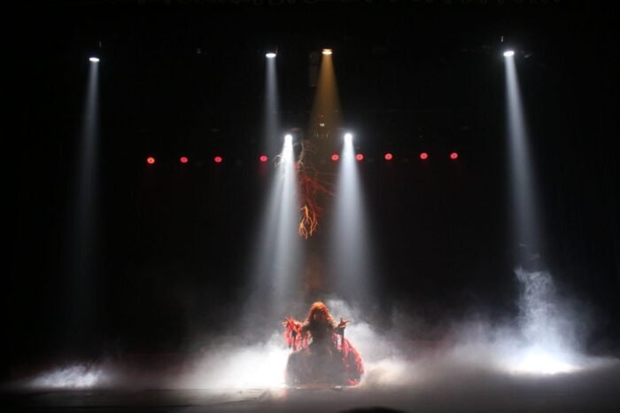 جاء العمل ضمن مهرجان الأردن المسرحي بدورته الثلاثين دورة أشرف طلفاح، حاملاً معه لغة بصرية محكمة بناها المخرج يوسف البلوشي برؤية سينوغرافية تتقاطع فيها الأسطورة مع الواقع، فيما رسم محمد الصبحي ملامح ديكور يعيد تشكيل روح الطبيعة على الخشبة، وتكامل ذلك مع إضاءة عيسى الصبحي التي صنعت فضاءً يتحرك بين عالمين، عالم البشر وعالم الأرواح.
