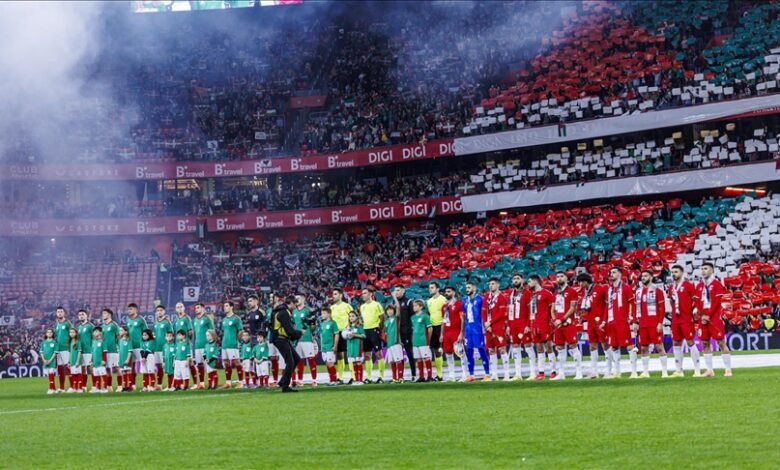 وحضر اللقاء نحو 50 ألف مشجع وفق توقعات أولية، رافعين الأعلام الفلسطينية، فيما استقبل لاعبو المنتخب الفلسطيني أرض الملعب وهم يحملون لافتة مكتوب عليها: “أوقفوا الإبادة”، لتلقى تصفيقًا واسعًا من الجمهور.