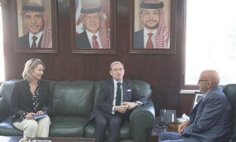 بحث وزير المياه والري، المهندس رائد أبو السعود، مع السفير الفرنسي لدى المملكة، فرانك جيليه، أوجه التعاون المشترك في مجال المياه وسبل تعزيزها.