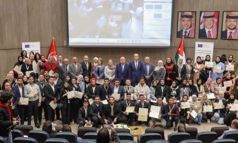 رعى رئيس الجامعة الهاشمية الأستاذ الدكتور خالد الحياري، حفل تخريج المشاركين في البرنامج التدريبي لبناء قدرات الطلبة والعاملين ضمن مشروع “تعزيز دور الشباب في تنمية المجتمع” في محافظتي الزرقاء والمفرق الذي ينفذه مركز الدراسات والاستشارات وخدمة المجتمع بالتعاون مع مؤسسة الملك الحسين/معهد تنمية المجتمعات المحلية وبدعم من الاتحاد الأوروبي.