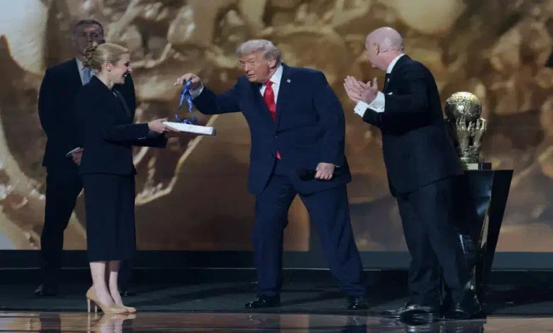 قدم الاتحاد الدولي لكرة القدم (الفيفا)،، الجمعة، النسخة الأولى لجائزة فيفا للسلام؛ خلال حفل قرعة كأس العالم 2026، في مركز جون إف كينيدي للفنون المسرحية، بالعاصمة الأميركية واشنطن.