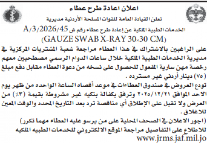 الرئيسية/أخبار الاردن/عطاء صادر عن الخدمات الطبية الملكية أخبار الاردن عطاء صادر عن الخدمات الطبية الملكيةمنذ 7 ساعاتآخر تحديث: ديسمبر 7, 2025 أقل من دقيقة فيسبوك X ماسنجر ماسنجر واتساب تيلقرام لاين الشاهين الاخباريمنذ 7 ساعاتآخر تحديث: ديسمبر 7, 2025 أقل من دقيقة فيسبوك X ماسنجر ماسنجر واتساب تيلقرام لاين فيسبوك X ماسنجر ماسنجر واتساب تيلقرام لاين