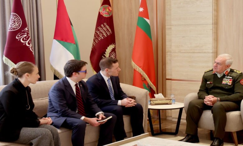 استقبل رئيس هيئة الأركان المشتركة اللواء الركن يوسف الحنيطي، الأحد، في مكتبه بالقيادة العامة للقوات المسلحة الأردنية- الجيش العربي، وفداً من أعضاء الكونغرس الأميركي برئاسة كبير موظفي الحزب الجمهوري في لجنة الخدمات العسكرية أريك تراغر.