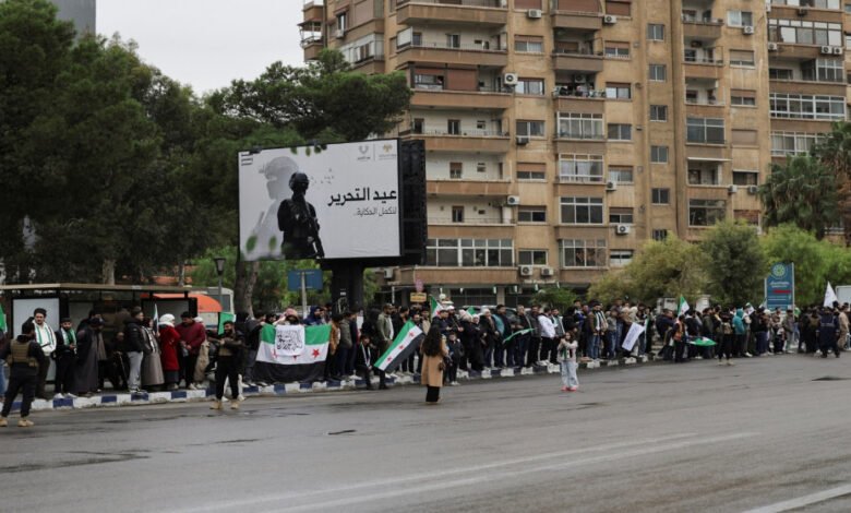 وتشهد بعض مناطق سوريا احتفالات منذ عدة أيام وامتلأت شوارع حماة بالآلاف يوم الجمعة ملوّحين بالعلم السوري الجديد إحياء لذكرى اليوم الذي سيطرت فيه هيئة تحرير الشام على المدينة خلال تقدّمهم السريع صوب دمشق.