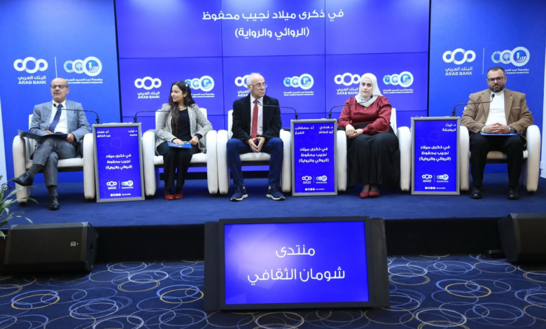 عاينت ندوة نظمها المنتدى الثقافي في مؤسسة عبد الحميد شومان، مساء أمس، مجموعة من الأعمال الأدبية والروائية لنجيب محفوظ بمناسبة ذكرى ميلاده الـ 114، بحضور نخبة من الأدباء والكتاب والمعنيين.
