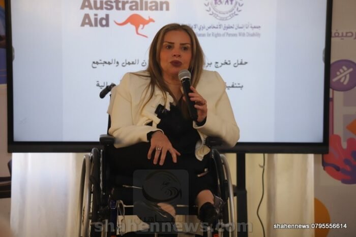 تحت رعاية وزير العمل ورئيس مجلس إدارة مؤسسة التدريب المهني الدكتور خالد البكار وحضور سعادة العين آسيا ياغي رئيس لجنة الاشخاص ذوي الاعاقة والمدير التنفيذي لجمعية أنا إنسان لحقوق الأشخاص ذوي الإعاقة وسعادة السفيرة دولة استراليا السيدة باولا غانلي، ومحافظ الزرقاء عطوفة الدكتور فراس أبو قاعود ، ومدير مديرية تنمية عمان الغربية خرجت جمعية أنا إنسان 36 متدرب ومتدربة من الاشخاص ذوي الاعاقه، ضمن المشروع الذي نفذته انا انسان حول الادماج في مكان العمل والمجتمع ” التسويق الرقمي ومهارات خدمة العملاء والتفاوض المبني على المصلحة”، بدعم من السفارة الاسترالية وبالتعاون مع مؤسسة التدريب المهني .حيث رحبت ياغي بالحضور الكريم واثنت على اهمية مواكبة التطور في اختيار التدريبات التي تساعد الافراد على الانخراط في العمل وبينت اهمية التشبيك مع القطاع العام والخاص ومنظمات الاشخاص ذوي الاعاقة في التشغيل عملاً باحكام قانون حقوق الاشخاص ذوي الاعاقة الذي ينص على تفعيل نسبة ال 4% في تشغيل ذوي الاعاقة .
