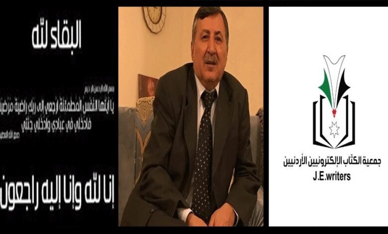 إيماناً بقضاء الله وقدره ، وبفائض من مشاعر اﻷسى والحزن ، ينعي اعضاء الهيئة الإدارية والعامة لجمعية الكتاب الالكترونيين الأردنيين ممثلين بسعادة رئيس الجمعية الاستاذ عادل ابو عبيد الأخ والزميل
