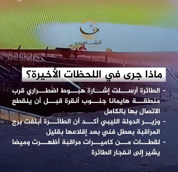 تفاصيل عن حادث تحطم طائرة فالكون 50 الليبية: التحقيقات مستمرة”