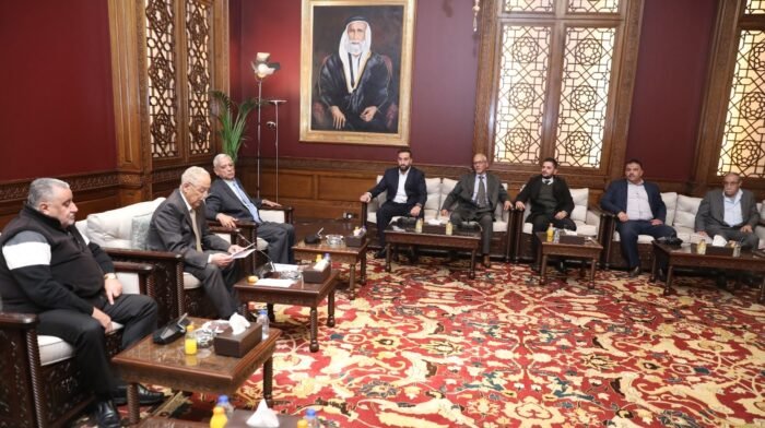 عقد رئيس الديوان الملكي الهاشمي يوسف حسن العيسوي، اليوم الخميس، لقاءين منفصلين في الديوان الملكي الهاشمي، جمعاه مع وفدين، ضم الأول وفدًا من نادي القادسية، فيما ضم الثاني وفدًا من فريق “كلنا خلف القائد”.