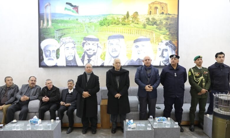 وفي أم قنطرة بمحافظة جرش، قدّم العيسوي واجب العزاء بوفاة اللواء محمد أحمد الحراحشة، ناقلا إلى ذوي الفقيد وعموم عشيرة الحراحشة، تعازي جلالة الملك وسمو ولي العهد، سائلا المولى عز وجل أن يتغمده بواسع رحمته ويسكنه فسيح جناته.