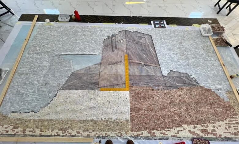 بلدية ام الجمال تنفذ جداريات فسيفسائية على مدخل المدينة الأثرية
