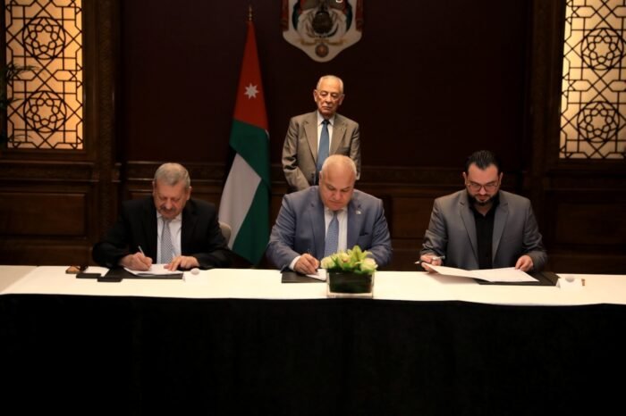 ووقع الاتفاقية في الديوان الملكي الهاشمي، وزير العمل خالد البكار والمدير التنفيذي للشركة الدكتور محمد خالد الخطاب ورئيس لجنة بلدية اليرموك فايز شعبان.
