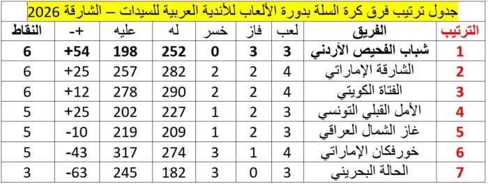 يستأنف فريق نادي شباب الفحيص للسيدات بكرة السلة – حامل اللقب – مشواره في النسخة الثامنة من دورة الألعاب للأندية العربية للسيدات (الشارقة 2026)، عندما يلتقي فريق الحالة البحريني عند الساعة الحادية عشرة من صباح يوم غد الأحد، في صالة نادي البطائح بإمارة الشارقة، ضمن منافسات الجولة الخامسة من الدور التمهيدي للبطولة.