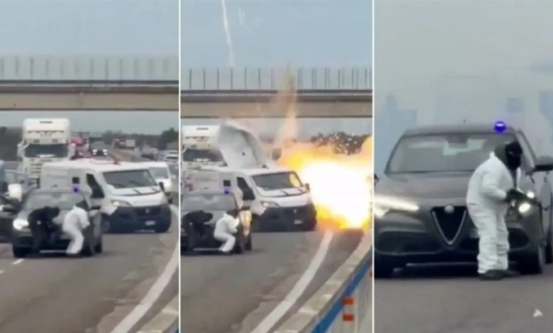وبحسب تقارير إعلامية إيطالية، أقدم المهاجمون على إغلاق الطريق عبر إشعال مركبات وسط المسار، ما أدى إلى تشكيل حاجز ناري واحتجاز عدد من السائقين، فيما ترجل أفراد العصابة وهم مقنّعون ويرتدون ملابس سوداء وبيضاء، وفتحوا النار على الشاحنة المصفحة قبل تفجير عبوة ناسفة أدت إلى تمزيق سقفها.