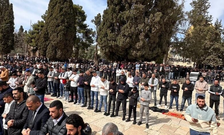 أدى عشرات الآلاف من الفلسطينيين، صلاة يوم الجمعة في باحات المسجد الأقصى المبارك بمدينة القدس المحتلة، رغم تضييقات الاحتلال وعراقيله العسكرية.