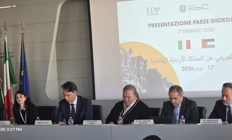 في إطار حراك اقتصادي ودبلوماسي نشط يعكس توجهات المملكة نحو توسيع حضورها الاستثماري في دول الاتحاد الأوروبي، بدأ وفد وزاري زيارة عمل إلى العاصمة الإيطالية روما، بمشاركة وزيرة التخطيط والتعاون الدولي زينة طوقان، ووزير الاستثمار الدكتور طارق أبو غزالة، والسفير الأردني لدى إيطاليا قيس أبو ديّة.