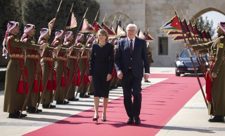 غادر الرئيس الألماني فرانك فالتر شتاينماير عمان، اليوم الأربعاء، ترافقه السيدة الأولى إلكه بودنبندر، بعد اختتام زيارة للمملكة عقد خلالها مباحثات مع جلالة الملك عبدالله الثاني.