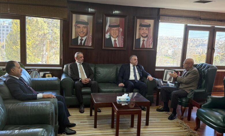 استقبل وزير المياه والري المهندس رائد أبو السعود الممثل المقيم لمنظمة الأغذية والزراعة للأمم المتحدة (الفاو) المهندس نبيل عساف بمناسبة انتهاء عمله في الأردن بحضور أمين عام سلطة وداي الأردن المهندس هشام الحيصة والمهندس طلال الفايز مسؤول العلاقات والتنسيق الحكومي في المنظمة .